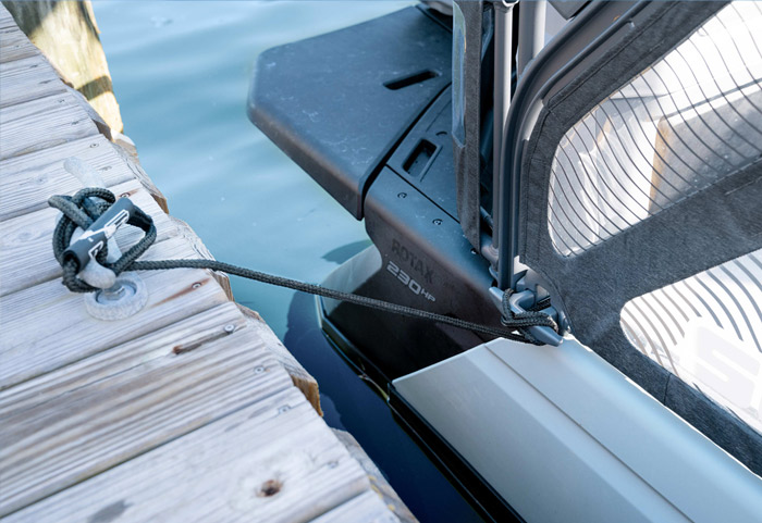 O modelo Sport apresenta detalhes esportivos especiais, como capacidade para até 8 pessoas, amplo deck para descanso com encostos e protetores contra sol, suporte inflável de engate rápido, espelhos retrovisores para acompanhar as manobras de wake e muito, muito mais.